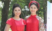 Á hậu Thanh Tú cũng góp mặt với bộ cánh áo dài cách điệu. |