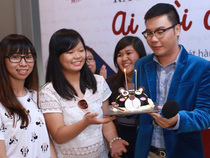 Hàng nghìn khán giả trẻ kéo nhau đến dự buổi giới thiệu sách của Hamlet Trương. Đặc biệt, các fan còn làm tiệc sinh nhật nhỏ mừng anh tròn 26 tuổi ngay trên sân khấu. Họ tặng anh chiếc bánh kem rất dễ thương khiến anh vô cùng xúc động. Hamlet Trương chia sẻ, anh không có thói quen làm sinh nhật, vì đối với anh mỗi ngày đều vui vẻ, hạnh phúc chứ không riêng gì ngày sinh nhật. Với món quà bất ngờ này từ fan, nam ca sĩ - nhạc sĩ thấy vui vì mình được yêu thương thật nhiều. |