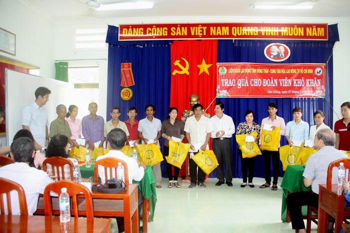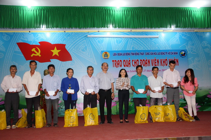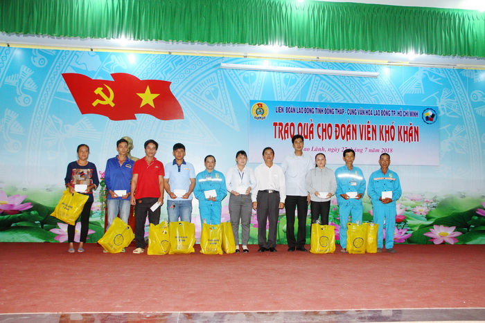 Sáng ngày 27/7/2018, nhân dịp KỶ NIỆM 89 NĂM THÀNH LẬP CÔNG ĐOÀN VIỆT NAM (28.7.1929-28.7.2018), Cung VHLĐ TPHCM tổ chức chuyến đi thăm và tặng 100 phần quà cho con, em CNLĐ tỉnh Đồng Tháp.