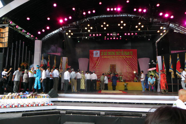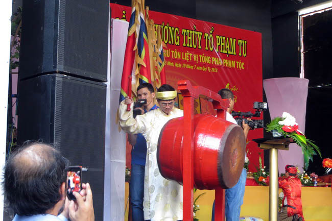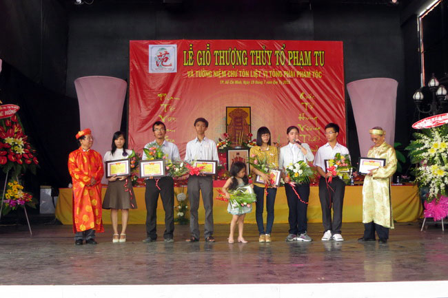 Sáng nay, 9g30 chủ nhật ngày 25/8/2013, hơn 600 bà con Họ Phạm cùng đại biểu khách mời đã có mặt tại sân khấu Hoàn Vũ – Công viên Lê Thị Riêng để dự Lễ Giỗ Tổ Họ Phạm Việt Nam lần thứ 1468. Buổi lễ đã diễn ra trong không khí trang nghiêm, ấm cúng theo đúng nghi lễ cổ truyền của dân tộc Việt Nam. Nhạc sĩ Phạm Tuyên tuy tuổi cao nhưng đã vượt hơn 1000 km từ Hà Nội về Tp.HCM đã tham dự buổi lễ trang trong này. Đặc biệt là phần trao thưởng Khuyến Học – Khuyến Tài cho hơn 20 con cháu họ Phạm có thành tích xuất sắc trong học tập với số học bổng trị giá hơn 30 triệu đồng. Trong đó có một con em sinh viên họ Phạm được doanh nhân họ Phạm là Phạm Văn Tuyền tài trợ suốt thời gian theo học trại trường ĐH Quốc gia TP.HCM. Nhiều nghĩa cử cao đẹp của các em học sinh khi được nhận giải thưởng đã làm xúc động những người tham dự như em Bùi Vũ Nguyệt Minh (cháu ngoại Họ Phạm) và em Phạm Thị Thúy Hiền chỉ xin nhận phần thưởng tinh thần là bằng khen của Hội Đồng Họ Phạm Tp.HCM còn xin tặng lại số tiền thưởng cho các em có hoàn cảnh khó khăn hơn.