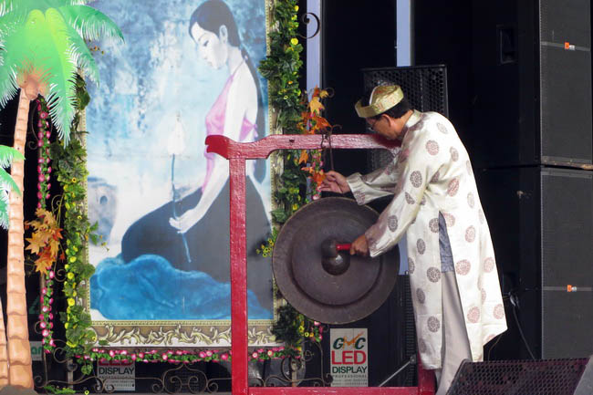 Đội múa lân trên sân khấu với chủ đề “Cung Nghinh Thượng Thủy Tổ Việt Nam”